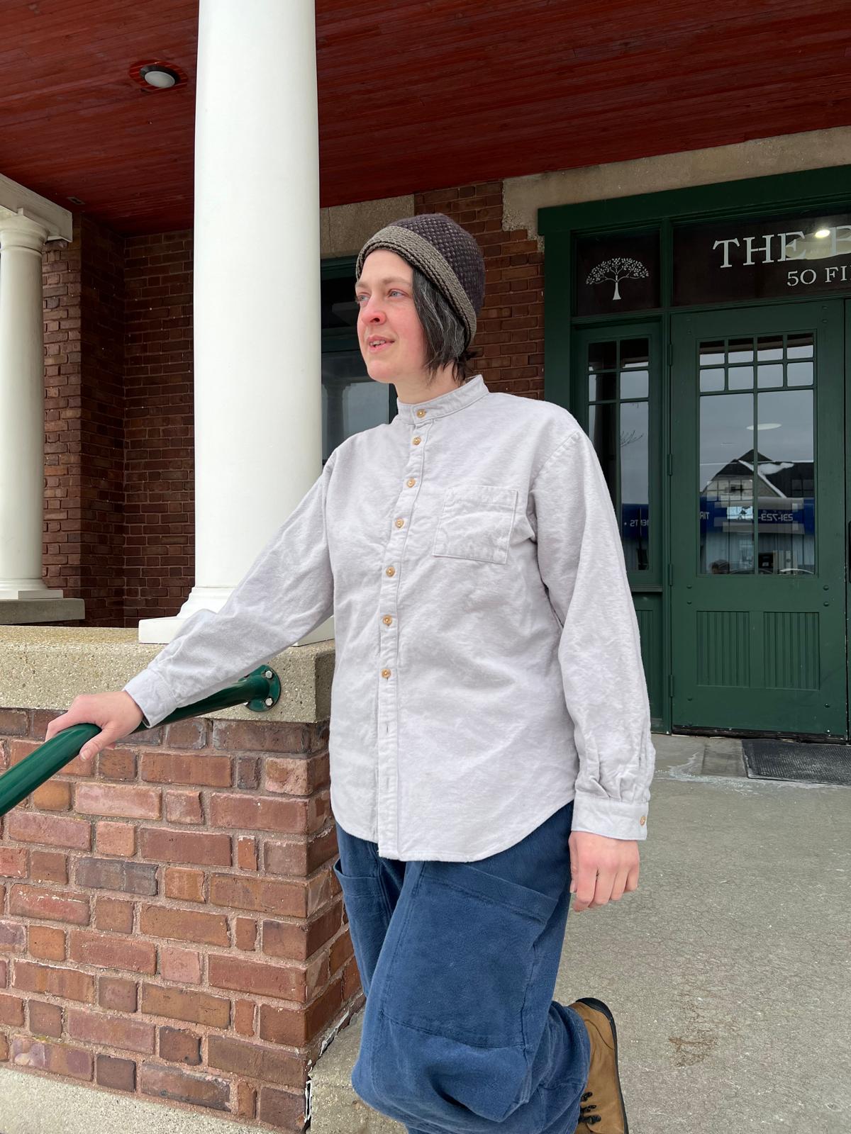 With a band collar, button front and cuffs, Abilene can be used as a shirt or light jacket.