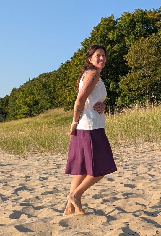 This is our new favorite skirt! Long enough for comfort, with a wonderful drape and a narrow waistband so it won’t pinch.